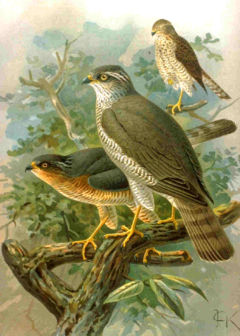 Krogulec (Accipiter nisus) – gatunek średniej wielkości ptaka drapieżnego z rodziny jastrzębiowatych. W Polsce rozpowszechniony, ale skrajnie nieliczny (lub lokalnie bardzo nieliczny) ptak lęgowy. Stosunkowo najliczniej występuje w rozległych lasach na wschodzie kraju[3]. Częściowo wędrowny (przeloty III-V i VIII-X). Część ptaków nie odlatuje na zimę, lecz prowadzi koczowniczy tryb życia. Wiosną i jesienią przelatują przez Polskę ptaki, które gnieżdżą się dalej na wschodzie i na północy.