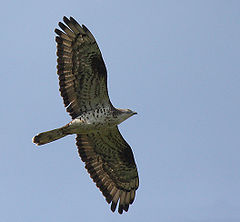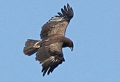Orlik krzykliwy Podobny do orła przedniego, lecz o wiele mniejszy, zbliżony wielkością do myszołowa. W locie widoczne długie, deskowate skrzydła z palczasto rozłożonymi lotkami pierwszego rzędu oraz białe nasady lotek i zaokrąglony ogon.